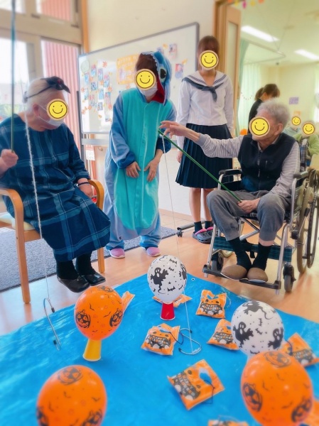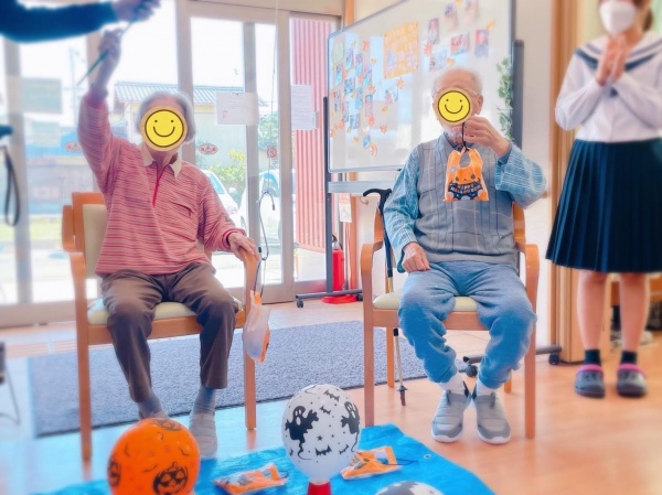 スタッフも仮装し、入所者様たちもカチューシャや変装眼鏡を付けて楽しんでいました🌼