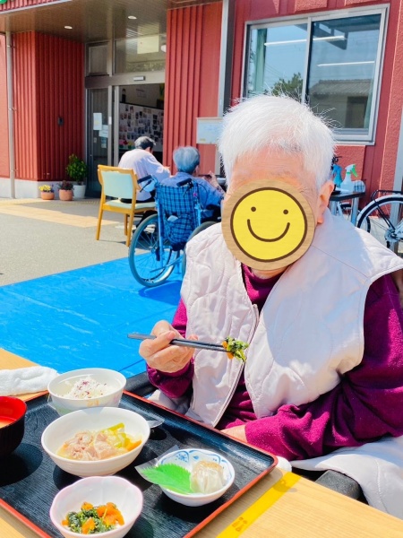 やっと暖かくなり、お天気も良かったのでお外でお昼ご飯を食べました。